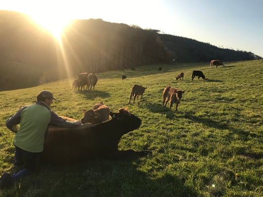 Wir haben Mutterkühe, die es lieben, wenn sie gekrault werden. Beim abendlichen Kontrollgang auf der Frühlingsweide hat es Martina nicht mal für nötig befunden ihre Ruheposition aufzugeben, als wir die Weide betreten haben. Vertraut genoss sie liegend das Rückenkraulen . Gwunderige Kälber waren kurzum auch zur Stelle. Balsam für die Seele - die friedliche Abendstimmung liess einen Corona vergessen ...