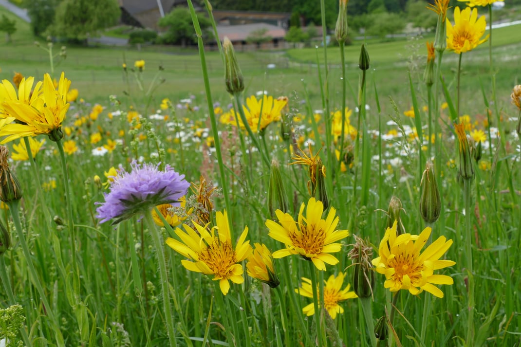 Unsere Wildblumenwiesen blühen jetzt. Wir danken allen Naherholungssuchenden, die sich entlang der Wege wohl an der Blütenpracht erfreuen, diese aber stehen lassen (auch wenn es durchaus verständlich ist, dass man gerne so einen Wiesenblumenstrauss mit nach Hause nehmen würde). Schmetterlinge, Wildbienen und Co. danken es uns, wenn wir darauf verzichten. Auch ist es wichtig, dass die Blumen Samen bilden können, damit in kommenden Jahren wieder für eine reiche Blüte gesorgt ist.