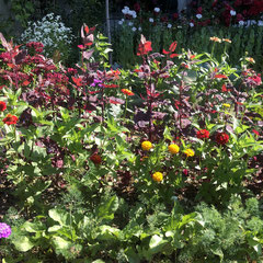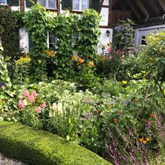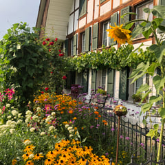 Hier wachsen traditionelle Bauerngarten-Pflanzen und robuste Rosen. Aber auch einige in Vergessenheit geratene Gemüsesorten, Kräuter und Blumen. Als Sortenbetreuerin für die Stiftung Pro Specie Rara vermehrt Sandra hier unter anderem die Samen von zwei seltenen alten Sorten für die PSR-Samenbibliothek in Basel.